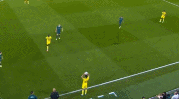 从下面的动图可以看得更加清楚,哈兰德原本是按照他一贯的节奏在提速前插。不过突然哈兰德停顿了下来,随后高高跃起,重重把皮球用头砸向球门。